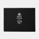 A personalized Keep Calm and Carry On saying. Humorous or whimsical try on your creative words on two editable lines of text. Remember to use CAPITAL letters for best results. A custom floor mat sure to make an impression on or off the floor.