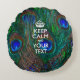 Personalized KEEP CALM AND Your Text for Peacock Round Pillow