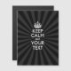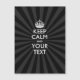 A personalized Keep Calm and have your saying. Humorous or whimsical try on your creative words on two editable lines of text. Remember to use CAPITAL letters for best results.