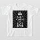 A personalized Keep Calm and have your saying. Humorous or whimsical try on your creative words on two editable lines of text. Remember to use CAPITAL letters for best results.