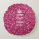 Personalized KEEP CALM AND Your Text Pink Fuchsia Round Pillow