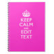 Personalized KEEP CALM AND Your Text Vibrant Pink Notebook