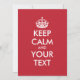 Personalized KEEP CALM and YOUR TEXT - white words and chahge red background color
