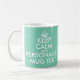 Personalized Keep Calm and your text mugs. Personalizable template. Cute favor gift idea for men and women at wedding party, engagement party, marriage anniversary, or bridal shower. Make your own for bride to be and bride's entourage; bridesmaids, maid of honor, groomsmen, groom etc. Customize background colors ie mint green. Vintage keepcalm typography with royal crown. Create your own funny KeepCalmandCarryOn parody cups. Simply edit the stylish text of this template to make a unique design. Popular quotes: Keep calm and thank you. Keep calm and love me. Keep calm and be married. Personalized keep calm and carry on mugs are a great gift idea for friends and family. Also as to go travelmug.