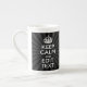 Personalized KEEP CALM Your Text Black Sunburst Bone China Mug