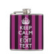 Personalized KEEP CALM Your Text Fuchsia Stripes Hip Flask