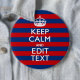 Have your personalized Keep Calm saying on this fine custom gift for yourself or for someone special on your list. Offered on a vibrant stylish red and blue horizontal stripes decor. Humorous or whimsical try on your creative words on the two editable text fields you see on this product page. Remember to use CAPITAL letters for best results.
