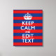 Personalized KEEP CALM Your Text on Stripes Canvas Print