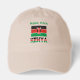 Personalized dad hat features the Kenyan Flag with the word KENYA below in the colors of the flag. Above is a place for a name to personalize in green letters. A special way to honor your heritage. Fun to wear to family reunions, travel groups, and clubs. Thoughtful gift, too.