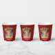 Celebrate your little one's special day in royal style with this custom red paper cup that features an elegant background of gold shimmery lines. Personalize this bright design with a photo of your young birthday boy, complete with a beautiful gold king or prince crown.