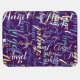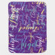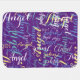 Nice purple (two tones) baby-blanket, personalized with your own special name in a stylish pattern design, in different handwritten font style.
