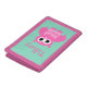 Personalized kids wallet with cute girly pink owl cartoon. Cute Birthday or Christmas gift idea for little girls. Personalizable with name or monogram letter of your child. Make one for your grandchild, daughter, granddaughter etc. Animal cartoon design. Mint green and pink colors.
