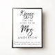 Personalized Kisses for the Mrs Bridal Shower Game Poster - A modern, simple and chic bridal shower game poster featuring script font text and stylish block font with black and white color palette. Personalize by adding the bride to be's future last name. Fits a variety of bridal shower themes whether you're planning a spring, summer, fall or winter bridal shower, indoors or outdoors bridal brunch. Edit the game instructions to fit your party needs. Available as a printed poster or instant digital download to print at home. Place this poster in your favorite frame and display as part of your bridal shower decor.