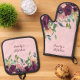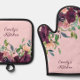 Personalized Kitchen Burgundy Pink Floral Oven Mitt & Pot Holder Set