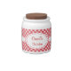 Red gingham decorates this kitchen canister. Personalize this jar by changing the name to suit your needs. The design is from original art.