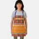 Great color and even though I ordered the kid size, it covers well enough to use during the holidays. I am not a big woman and prefer a shorter apron. I stand 5"6" and the length of the garment goes to mid-thigh. The tie straps fit well at my waist and even though there is no neck strap adjustment, the opening is plenty big enough. I am happy with the size and fit. I am sharing my apron with my 10 year old grandson, too! The color is vibrant and looks good, as shown on the website. The stitching looks strong and reinforced. Photographed is front side and back side of the apron, reinforced straps and coloring. My phone camera may not be the best at showing the details.