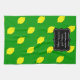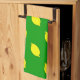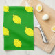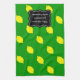 Personalized kitchen towel with yellow lemons pattern. Cute gift idea for home or business. Customizable background color and text. Healthy fruity food / diet theme. Famous quote: When life gives you lemons make lemonade.