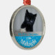 Celebrate your kitten's first Christmas with this personalized Christmas decoration. Decorated with a blue snow filled background and a silver strip, just add your cat's name, photo and year of birth.