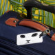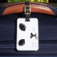 A cute black and white kitty cat face luggage tag for cat lovers. The back of the tag features the cat eyes only and is ready to be personalized with your name and phone number.
