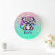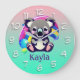 Cute cartoon koala bear sitting in front of a rainbow personalized clock.