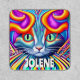 Add your name to this cool robot colorful kitty cat with mystical green eyes and colorful fur AI generated art patch.