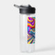 Add your name to this cool robot colorful kitty cat with mystical green eyes and colorful fur AI generated water bottle.