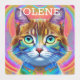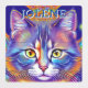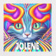 Add your name to this cool robot colorful kitty cat with mystical green eyes and colorful fur AI generated art labels.
