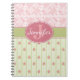 Delicate pink lace and spring green wallpaper stripes with English roses adorn this elegantly feminine design. Personalized with your name and initial.