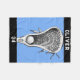 Lacrosse player or coach blanket featuring stick-and-ball design on light blue background. To personalize edit text to add lax player's name and team number #.