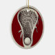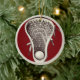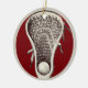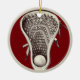 Lacrosse keepsake ornament, featuring a lax stick and ball illustration on maroon background. To personalize edit text to add player's name and year.