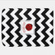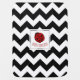 Personalized Ladybug blanket, with black and white chevron stripes.