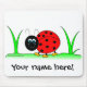 A cute cartoon ladybug on a mousepad. Customizable so you can add your name to the mousepad!