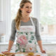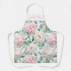 Delight the cook in your house with this personalized apron, featuring a large watercolor floral pattern of pink and white peonies with green foliage on a white background. Near the top, the words "[Your Name's] Kitchen" or other text of your choice appear in editable pink handwriting script on a white background.