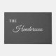 This personalized door mat is accented with your last name on a textured looking gray background, making it an elegant accessory for your home.