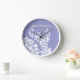 Lilac Black and White Damask White Dots Custom Wall Clock - Your Name - or change to read whatever you like. To change color click customize then edit. Use the last tool on the drop down - the little color box - click it to choose from the colors shown or enter your RGB Hex Code for a one of a kind designer clock!