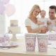 Celebrate your little one’s first birthday with these adorable lavender gingham paper cups featuring a soft watercolor illustration of classic baby toys — teddy bear, giraffe, bunny, duck, and pastel blocks. The gentle lavender tones and gingham pattern create a cozy, timeless look that’s perfect for a baby girl’s or boy’s milestone celebration. Personalize the cup with your child’s name to make the party table even more special and memorable.