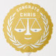 Law school graduation party or lawyer congrats balloon featuring scales of justice personified. Edit text to add his or her name.