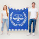 Creative lawyer gift blanket featuring scales of justice humor. Edit text to add lawyer, law school graduate, attorney or judge's name.