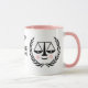 Funny lawyer or law school grad gift mug featuring scales of justice and motivational quote. Edit text to add name of attorney.
