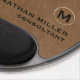 Elevate your workspace with this personalized brown leather print ergonomic mousepad. The smooth surface provides precise tracking for your mouse, while the wrist support helps to reduce strain and discomfort during extended use. The design features a luxurious brown leather print and a gold monogram medallion with your name and title. This mousepad is not only functional, but also adds a touch of sophistication to your desk.