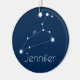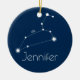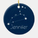 Personalized Leo Zodiac Constellation Ornament. Featuring Leo's Constellation on a Navy Background, this Personalized Leo Ornament Makes a Perfect Addition to Your Christmas Tree. Leo is the Fifth Sign of the Zodiac and Includes all Individuals Born from July 23rd - August 22nd. Leo's Symbol is The Lion. Leo's Personality Traits are Warmhearted, Generous, Loving, Enthusiastic and Bossy. Leo's Birthstone is the Peridot and Leo's Ruling Planet is the Sun. Background Color and Text can be Customized