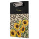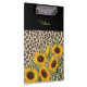 Personalized leopard animal print and sunflowers clipboard. You will be able to easily personalize with a name against the black background. This would also make a unique personalized gift for a teacher, nurse, real estate agent, etc.