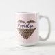 This tall 15 oz coffee mug features a soft pink jelly background, leopard heart, and your name in brush script typography on both sides.