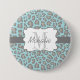 Leopard print design personalized button in blue and gray with a gray stripe, white edged with gray banner that you can customize with a monogram initial and name!