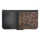 Personalized Leopard Print Wallet Phone Case. A rich leopard print and black leather with a brown belt and a place for your name on a combination case and wallet for the iPhone or Samsung Galaxy. A perfect gift for your favorite leopard lover. Fill in your name at the prompt to personalize and customize anyway you like.