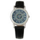 Personalized modern stylish blue, turquoise, teal and golden luxury mystical grand royal Julian fractal mandala wristwatch design with the owner's first and last name. The white letters are located on the dial instead of the numbers. This design has the name Amelia Smith written on it.