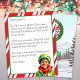 Add your child's name to this personalized letter from Santa. Cute vintage watercolor retro little black elf boy smiling. Back has a North Pole sign with illuminated Christmas lights and a snowy background with a stamp from Santa and The North Pole. Candy cane background.