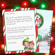 Add your child's name to this personalized letter from Santa. Cute vintage little elves smiling. Back has a North Pole sign with illuminated Christmas lights and a snowy background with a stamp from Santa and The North Pole. Candy cane background.