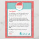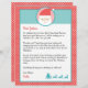 Personalize this letter from Santa with your child's name and text. This design features a Santa face, a silhouette of Santa sitting in the sleigh with his 3 reindeers and white polka dots red background. On the back is the coloring page of the lettering Merry Christmas and an elf holding a candy stick.