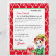 Add your child's name to this personalized letter from Santa. Cute elf holding a gift and candy cane background. On the back is a coloring page of Santa Claus holding a plate of cookies with a snowflakes background.